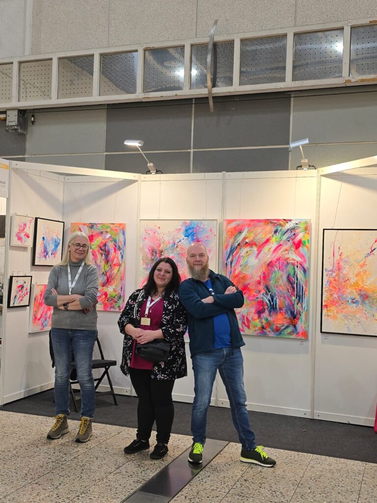 Zwischen den Ständen, den farbintensiven Werken und dem Stimmengewirr traf ich Menschen, die mir ans Herz gewachsen sind. Judith Kortwinkel mit ihrer warmen, humorvollen Art, Marianne Reichling und ihr Mann, die immer ein ruhiger, stabiler Pol im turbulenten Messegeschehen waren, und Svetlana Stentenbach, die mit ihrer eigenen künstlerischen Präsenz meine Messetage bereichert hat. Auch traf ich Yasmin Shafi Beikli wieder, wie schon in Osnabrück, ihr offenes, interessiertes und freundliches Wesen war ein ganz besonderes Geschenk an diesen Tagen.